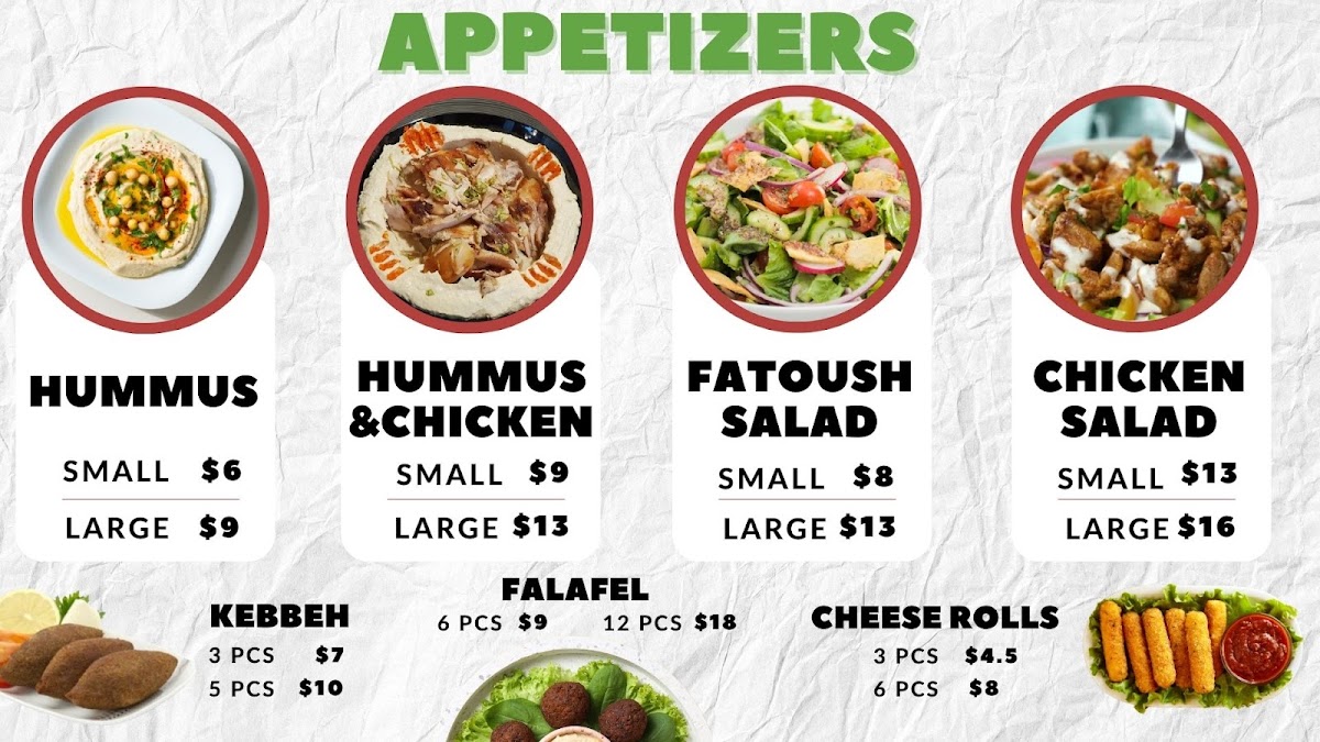 The menu is structured to accommodate different customer needs, from grocery shopping to purchasing specific meat cuts tailored by knowledgeable staff, and ordering prepared dishes for immediate consumption. It is suitable for those looking for halal ingredients for cooking at home as well as visitors interested in quick food options.